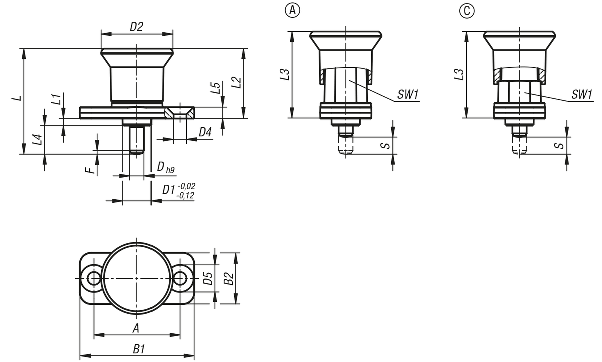 Forme C:avec encoche d'arrêt, sans contre-écrou