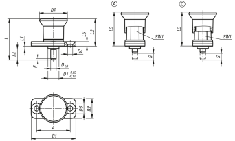 Doigts d'indexage miniatures en zinc injecté haute pression avec bouton de manœuvre en plastique et bride de fixation