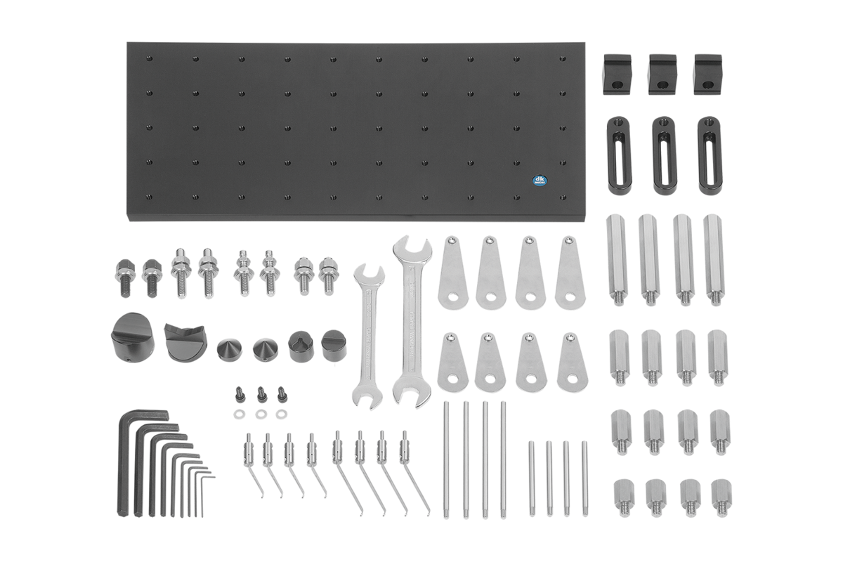 Kit de composants de serrage pour appareils de mesure tridimensionnelle permettant un serrage rapide et flexible des petites pièces. Ce kit permet de positionner avec précision, de stabiliser et de serrer en toute sécurité les pièces les plus diverses, telles que les pièces en plastique, les pièces découpées et les pièces tournées. Le serrage des pièces, un problème récurrent lors des opérations de mesure, est ainsi largement résolu.