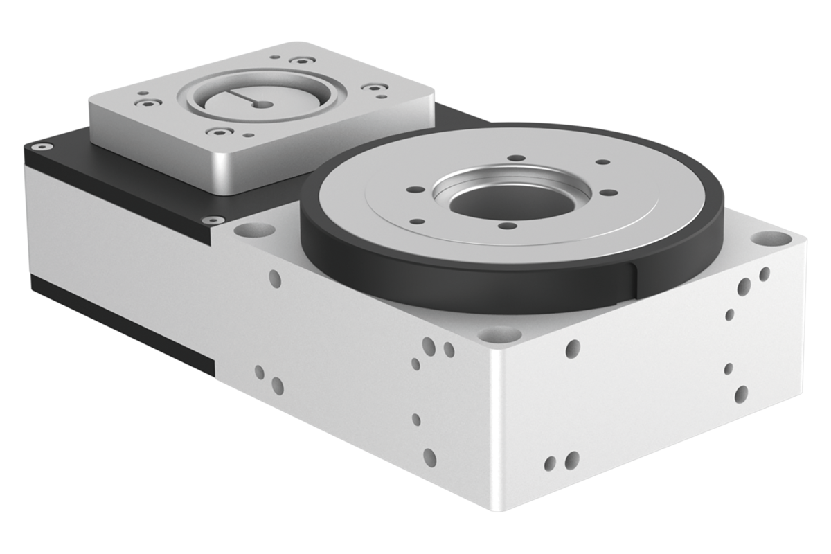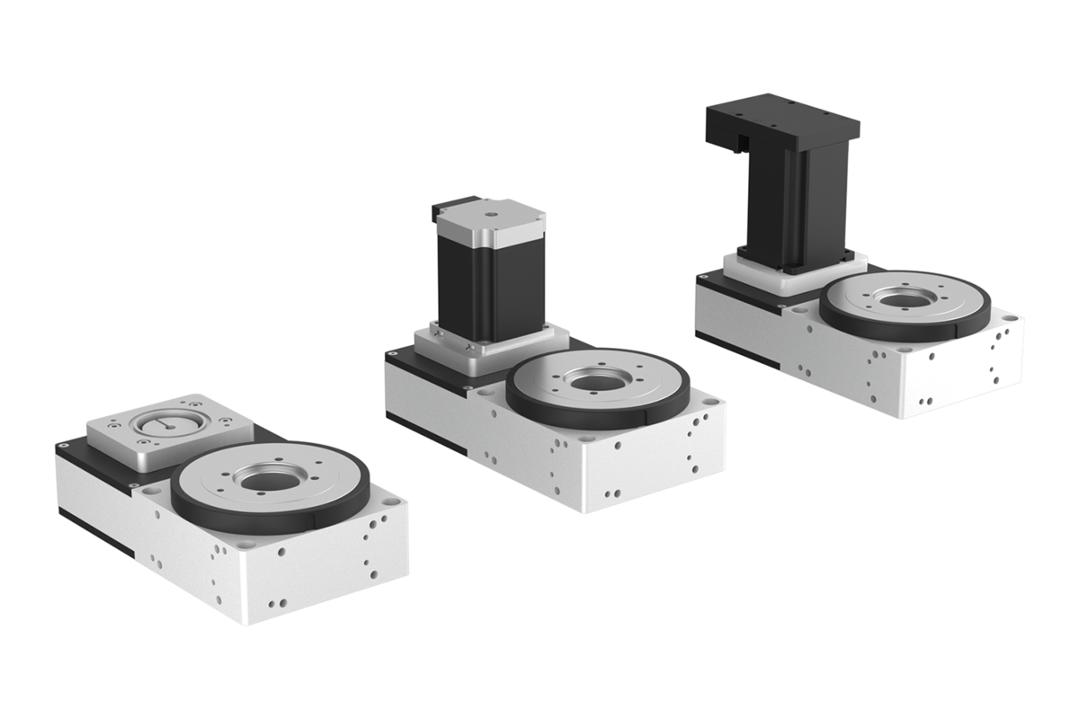 Les tables de positionnement circulaires avec entraînement à courroie dentée conviennent pour le positionnement précis et rapide de pièces à usiner. Le plateau tournant de la table rotative motorisée est entraîné par un moteur pas à pas et un entraînement à courroie dentée. Grâce à sa forme carrée, l’axe de rotation peut être intégré de manière polyvalente aux types de machines les plus divers.