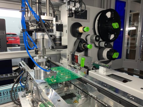 Automatically print & place multiple unique labels on a standard PCB at a speed of 3 seconds per label.