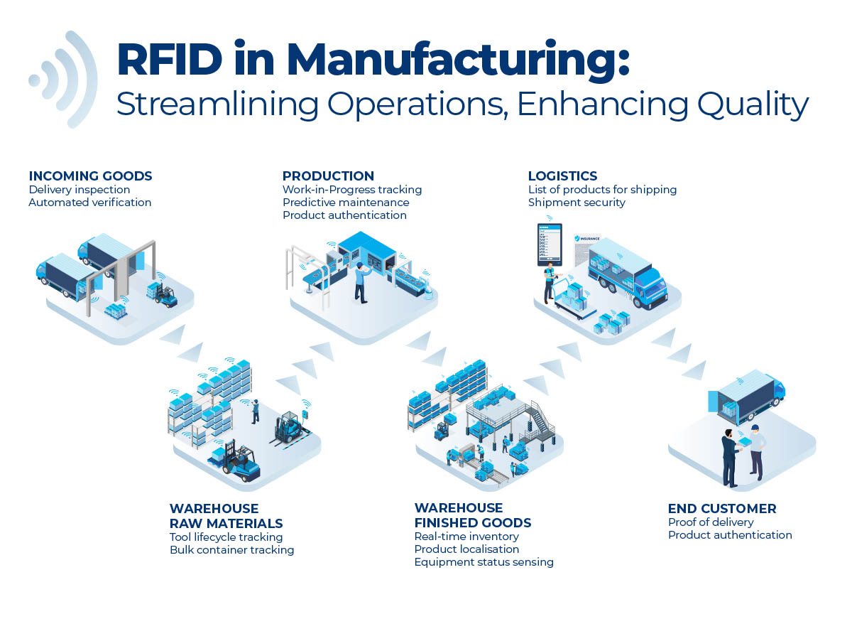 assembled or shipped to customers. All by placing fixed RFID readers at strategic locations. As a result, the journey or current location