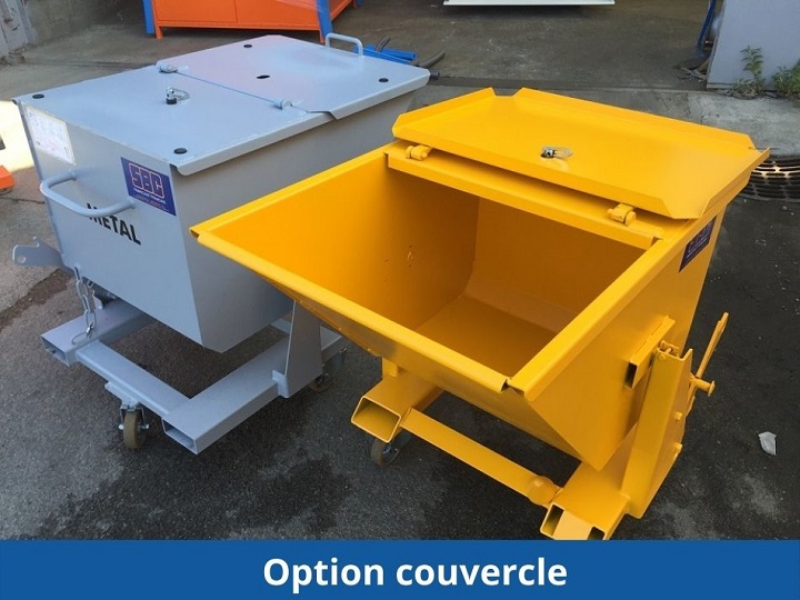 - Mini benne basculante sur pivot central à encombrement réduit pour déchets légers.