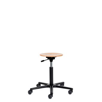 L’assise tourne à 360°, permettant une grande liberté de mouvement. Le tabouret est disponible avec roulettes ou patins, selon vos préférences, et une option de repose-pieds est disponible uniquement pour les modèles à patins et sur les tabourets hauts.