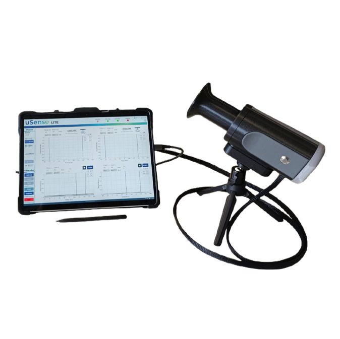 Le uSense LITE est équipé d'une tête radar FMCW fonctionnant à une fréquence centrale spécifique ; 112 GHz avec une largeur spectrale s'étendant sur 21 GHz ou 220 GHz avec une largeur spectrale s'étendant sur 50 GHz. Le uSense LITE fournit des signaux résolus en temps aisément visualisés, traités et sauvegardés par un bouton physique, ou directement sur le logiciel de contrôle.