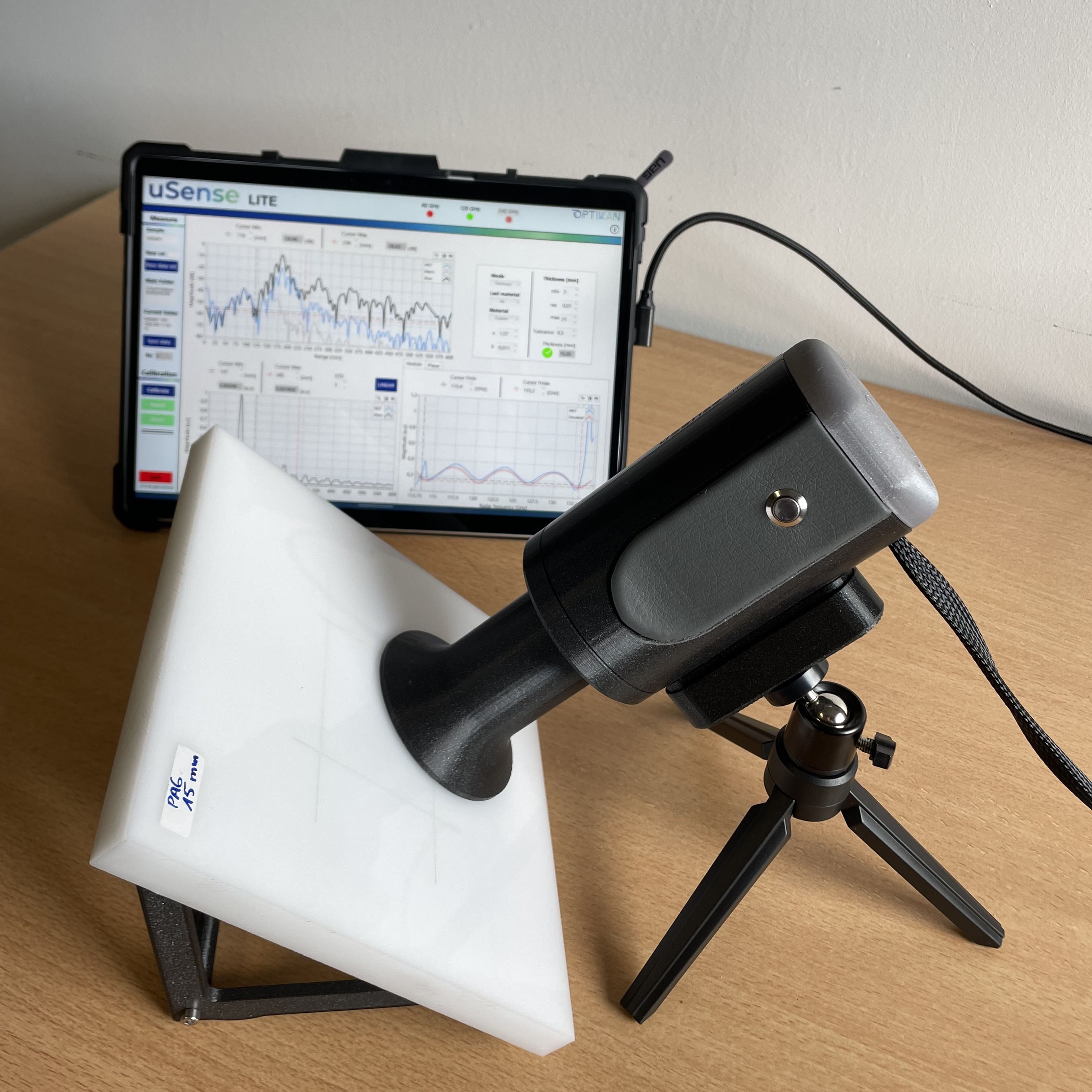 Le uSense LITE est compatible avec tous les matériaux diélectriques, tels que les plaques de plâtre, le bois, le papier, le carton, les céramiques, les polymères ou encore les composites. Selon la nature et la forme de la cible à inspecter, differentes montures sont disponibles. Nous proposons également des montures sur mesures adaptées à votre besoin.