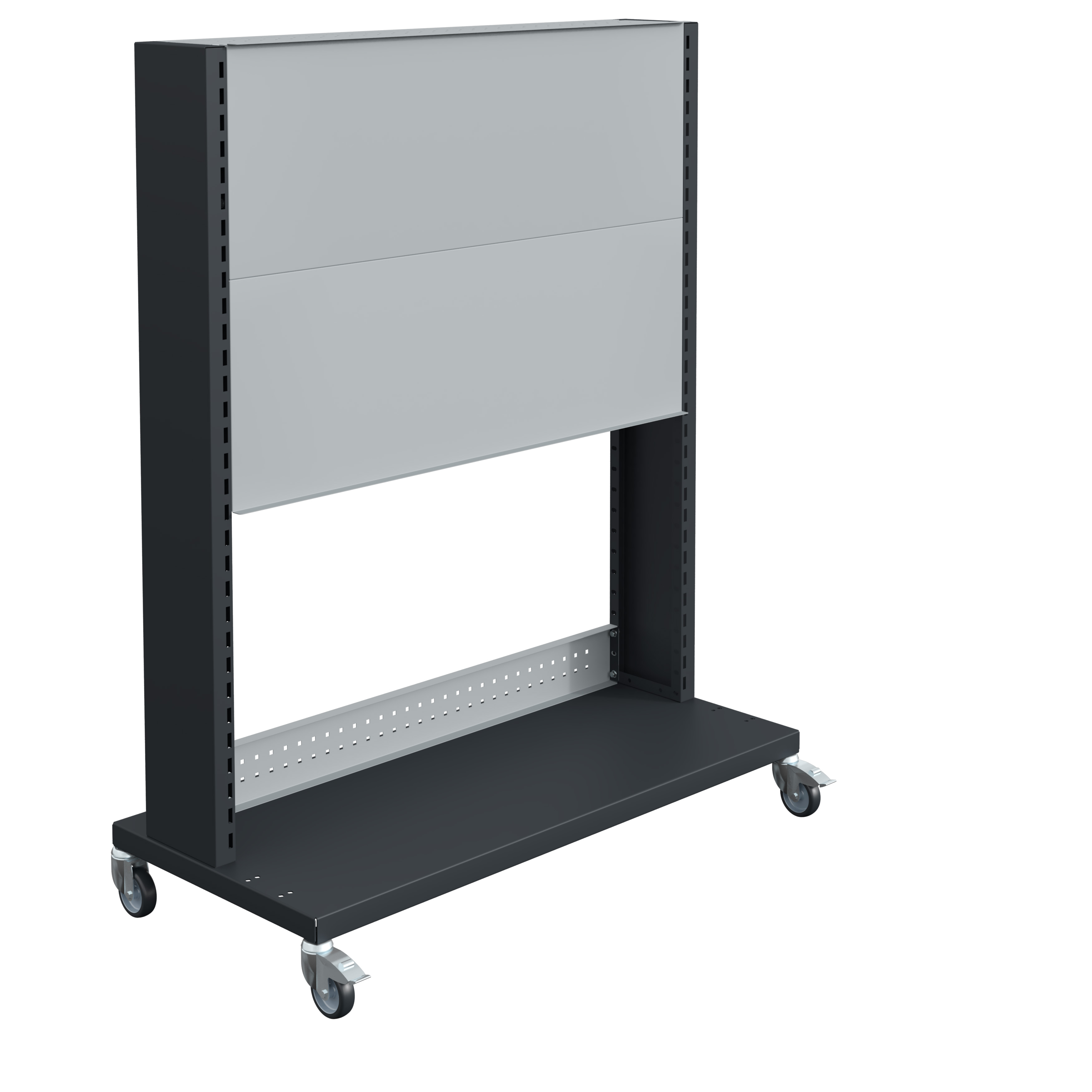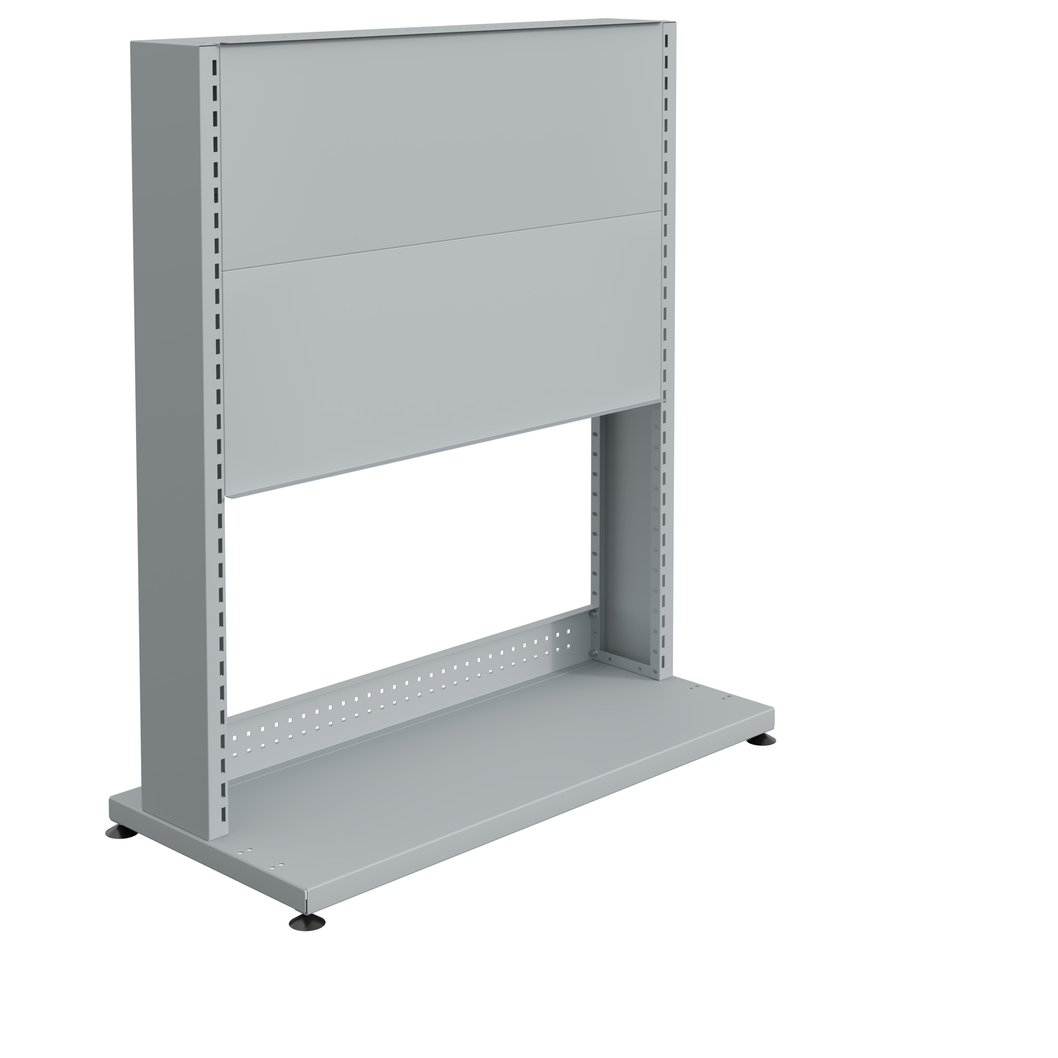 Les traverses, elles aussi fabriquées en tôle d’acier pliée de 12/10ème, assurent une rigidité supplémentaire et une stabilité accrue de l'ensemble du support, pour un usage prolongé sans déformation. L'assemblage est réalisé par vis, garantissant une fixation solide et une structure sécurisée.
