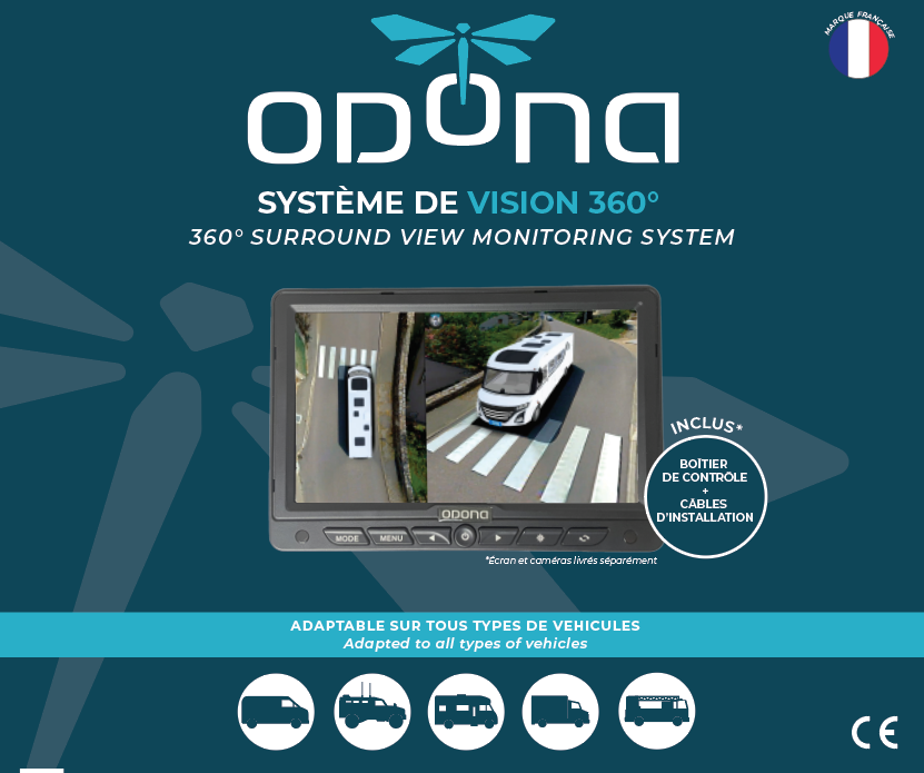 Forte de plus de 7 ans d'expérience dans l'équipement de système de cameras 360°, ODONA est une marque française de solutions de caméras pour véhicules. La marque a débuté avec le seul système de vision 360° "Drone View". Si les systèmes 360° existaient déjà, personne ne les avaient amenés à un tel niveau de personnalisation de simplicité. Avec aujourd'hui plus de 2000 installations, ODONA est devenue la marque référence sur le marché français.
