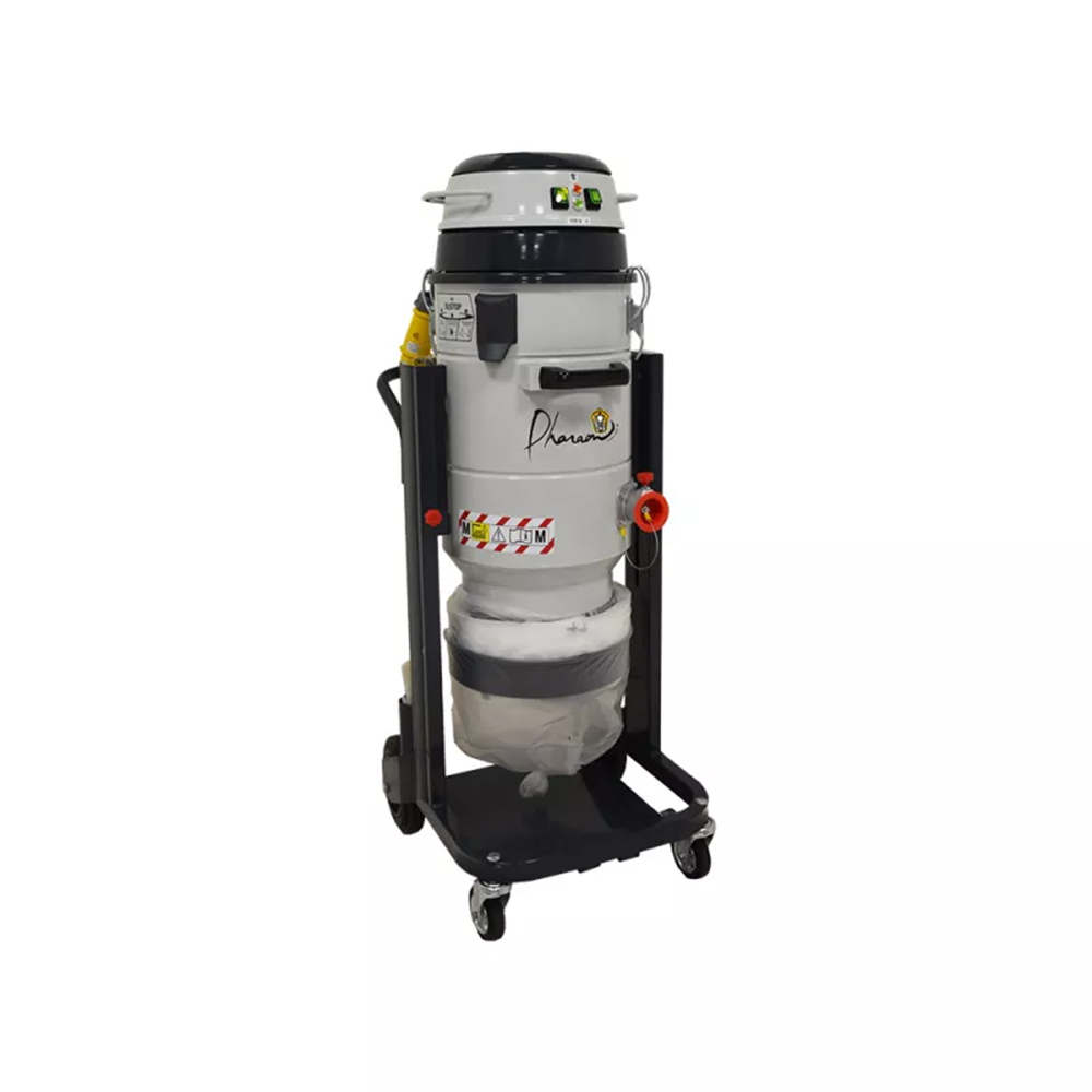 Il est équipé de deux moteurs by-pass monophasés 230 V, assurant une puissance de 2 300 W, une dépression de 2 500 mmH₂O et un débit d’air de 360 m³/h, assurant une aspiration efficace même pour les poussières les plus fines. Son système de filtration avancé repose sur un filtre à cartouches PTFE en polyester de classe M 1µ, assurantune surface filtrante de 30 000 cm².