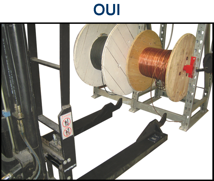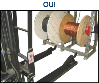 - une capacité en charge suffisante, compte tenu du poids des tourets, de la hauteur de chargement et du déport centre de gravité.