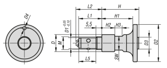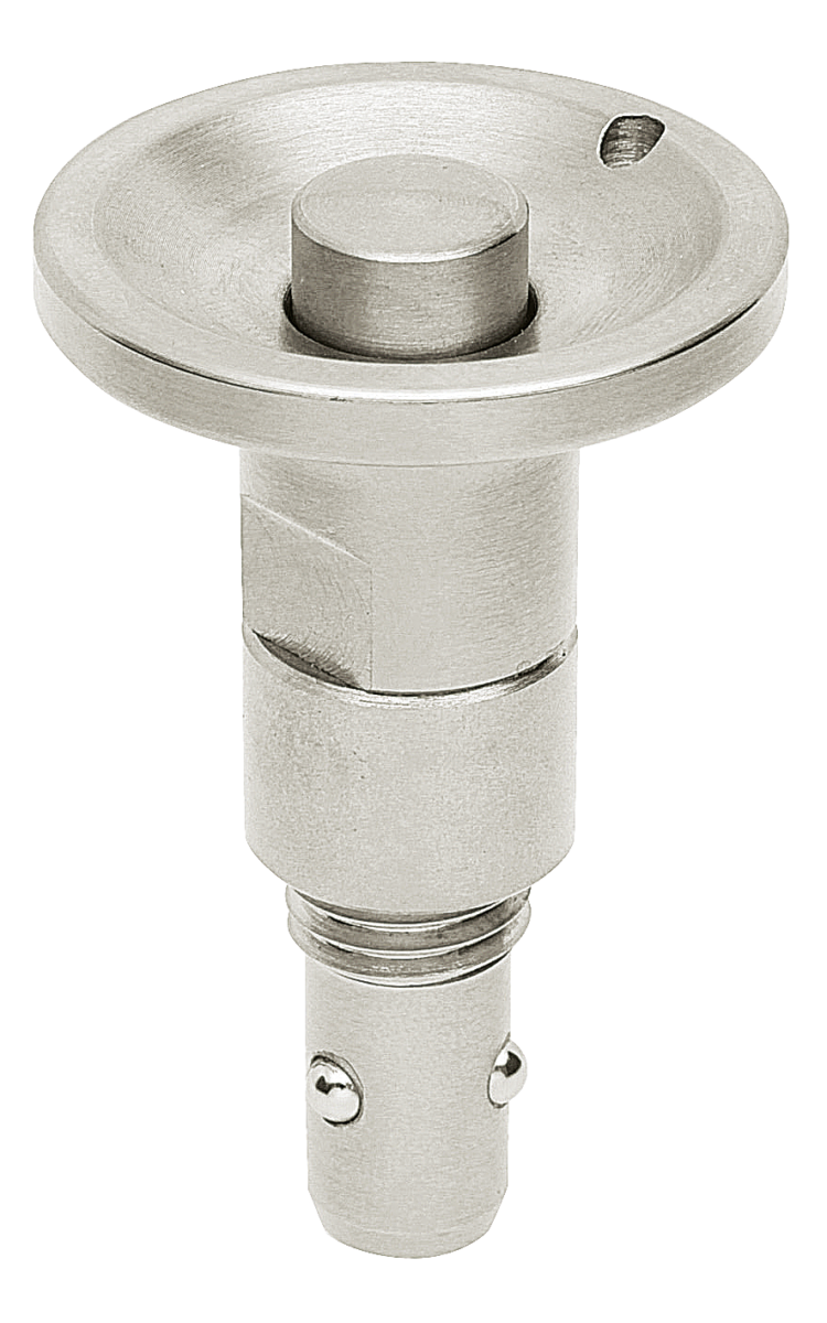 Corps et bouton-poussoir en acier.