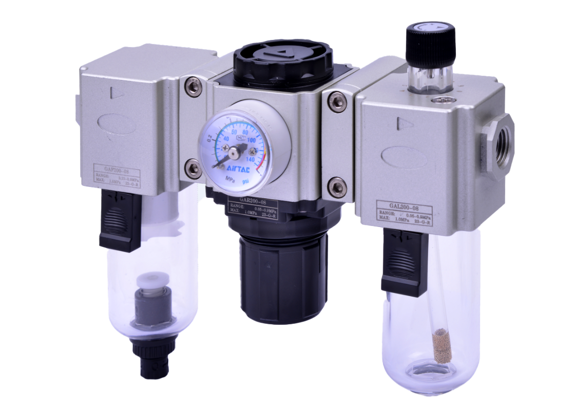 OI Technologies tient en stock une très large gamme de filtres régulateurs lubrificateurs, de la marque AIRTAC
