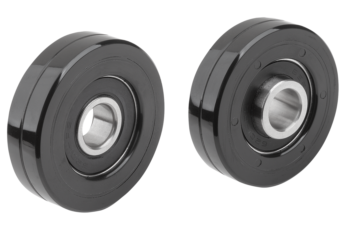 La bande de roulement est solidement moulée sur un roulement à billes. Le revêtement de la bande de roulement est composé de deux couches à partir du diamètre D = 40 mm.