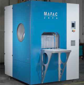 Le lavage de haute qualité par procédé d'immersion/aspersion. MAFAC-JAVA convainc avec son système à bain unique (en option avec 2 bains) équipée en série du procédé technologique d'immersion/aspersion. Pendant la phase de lavage, la chambre de traitement peut-être immergée jusqu'à 50% de sa capacité. Ce procédé est particulièrement efficace sur des pièces aux géométries complexes avec perçages dont les orifices sont difficiles d'accès pour les agents de lavage.