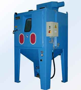 Applications: Dénoyautage, décapage, billage Matériau: Construction soudée stable et robuste, réalisée en tôle d'acier de 4 mm. Etendue standard de la livraison: - Grille de travail d'une grande robustesse - Plate-forme de travail - Revêtement de protection anti-impact - Réservoir de pression de 15 litres En option: - Plateau rotatif jointif à la grille support, à déplacement électrique ou manuel - Récupération pneumatique des agents de sablage permettant un travail sans plate-forme - Récupération mécanique par système à auges