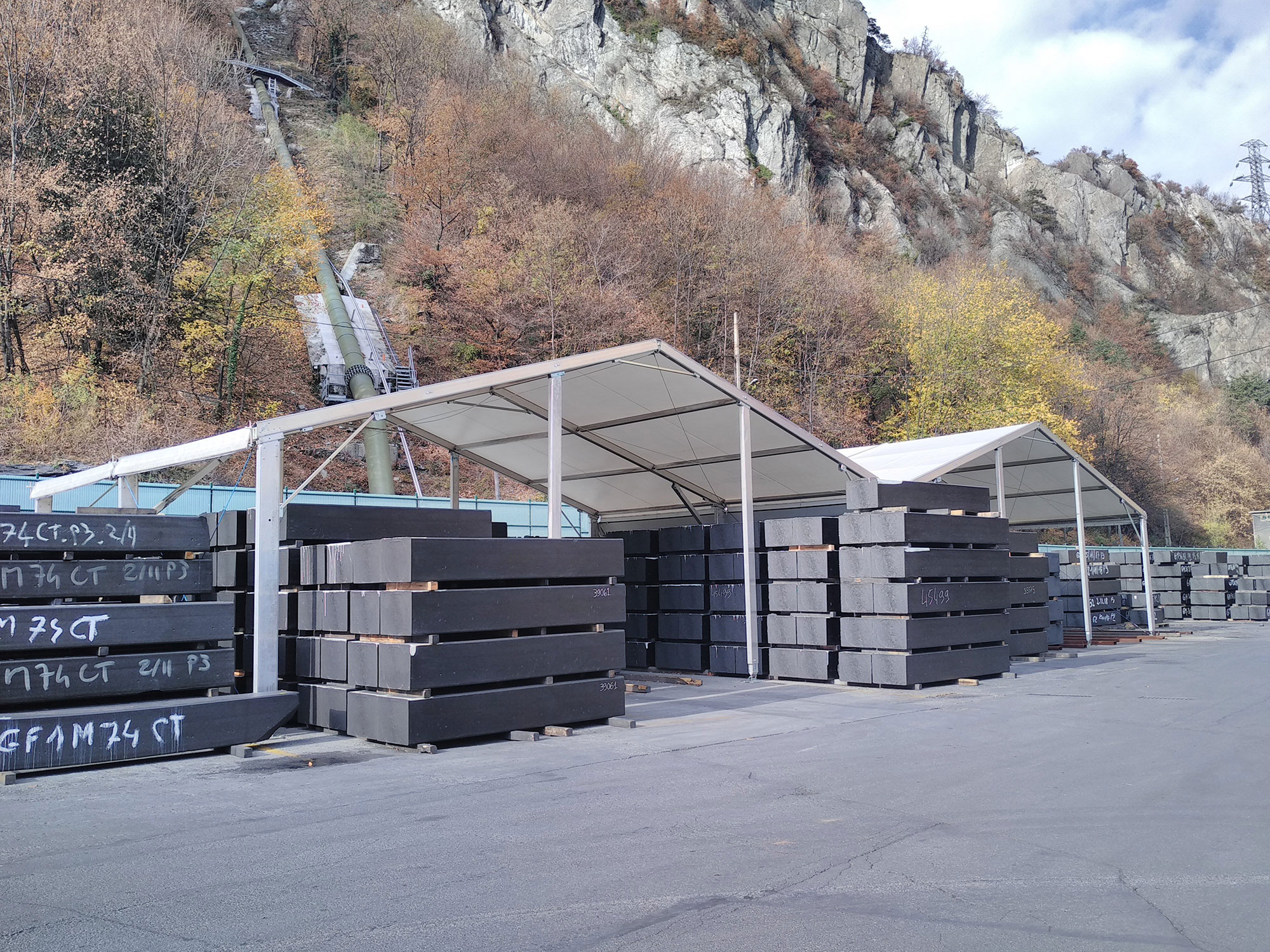 - Portée 5 à 20 mètres - Longueur à partir de 5 mètres puis modulables par multiples de 5 mètres - Hauteur bas de pente jusqu’à 5 mètres - Charpente aluminium - Toiture en composite souple de PVC translucide classé M2 - Périphérie : toile ou bac acier - Ouvrants piétons et marchandises - Options : éclairage, chauffage, récupération eaux pluviales, protèges bardage… - Disponible à la location à partir de 15 jours et à la vente