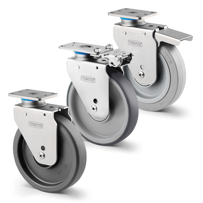- construction en acier inoxydable - composants inoxydables - chapes à faible encombrement - forte capacité de charge jusque 350kg - déclinaisons en fixes, pivotantes, pivotantes à frein suiveur, avec blocage directionnel, avec rappel de direction automatique. - aucune maintenance nécessaire