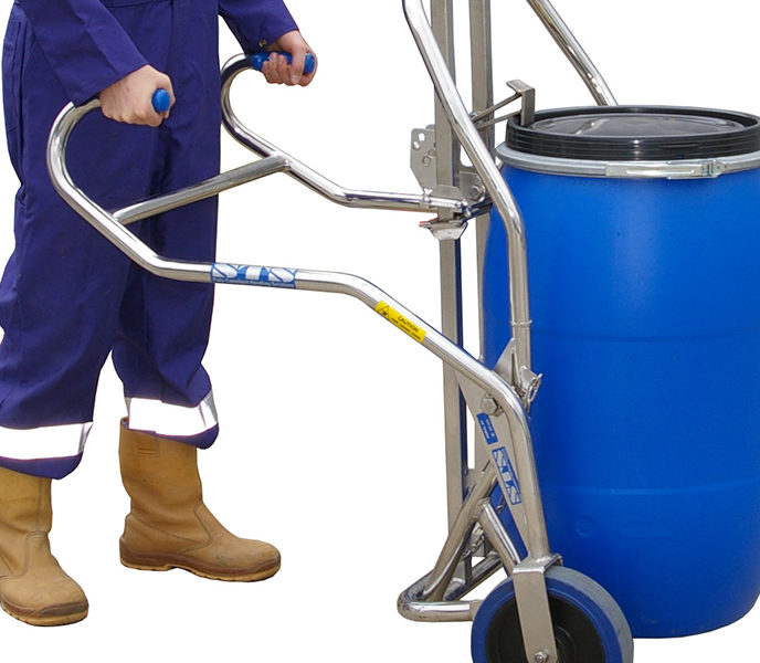 Le DTC01 est un chariot manuel universel conçu pour soulever et déplacer une grande variété de fûts jusqu'à 350 kg.