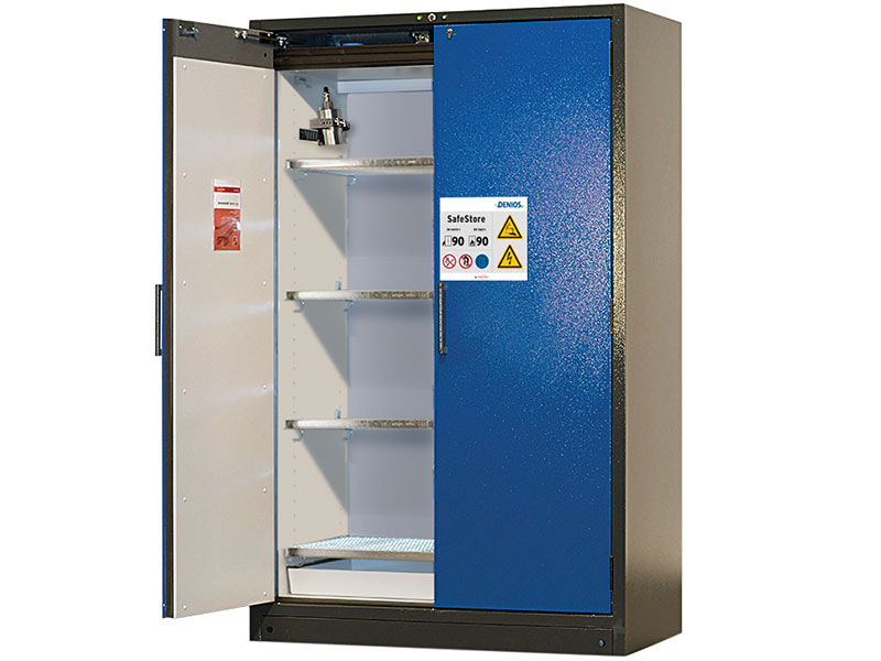 L'armoire de sécurité coupe-feu est une des solutions les plus sûres pour le stockage de batteries au lithium. Les armoires SafeStore pour batteries ont une protection coupe feu 90 minutes.