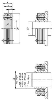Montage :Enlever les sécurités de transport présentes. Nettoyer et lubrifier légèrement l'arbre et les diamètres intérieur et extérieur du moyeu. Ne pas utiliser de MoS2 ni de graisse. Placer la frette de serrage sur le moyeu. Ensuite, enfiler l'ensemble (frette de serrage/moyeu) sur l'arbre et le mettre dans la position souhaitée. Serrer légèrement les vis de serrage dans l'ordre. Puis serrer les vis de serrage dans l'ordre à l'aide d'une clé dynamométrique en effectuant plusieurs passages jusqu'à atteindre le moment de serrage MS indiqué.