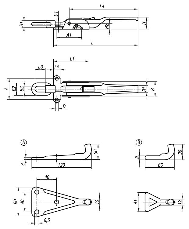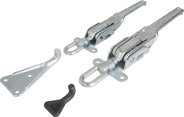 La gamme de produits norelem comprend encore d'autres variantes de grenouillères. En plus du modèle lourd, il existe les grenouillères avec étrier à ressort ou avec étrier de serrage.