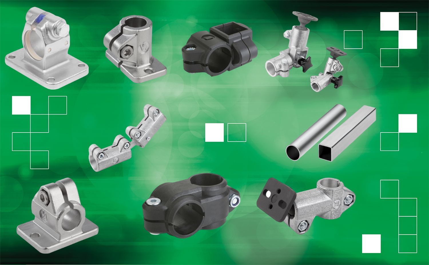 Les brides à patte avec denture intérieure peuvent être assemblées avec des brides à patte avec denture extérieure (29026) pour former une articulation. Les brides articulées sont réglables progressivement à 180°, ce qui permet de régler et d'adapter leur angle à chaque application. La vis à tête cylindrique avec écrou hexagonal zingué assure un raccordement sûr des tubes dans le système d'assemblage de tubes. Accessoires pour bridesEn plus des raccords de tubes, la boutique en ligne norelem propose une vaste gamme d'accessoires pour les systèmes d'assemblage de tubes tels que des : réducteursL'utilisation de réducteurs permet de serrer des tubes plus petits ou de passer de tubes carrés à des tubes ronds. bouchonsLes bouchons servent à protéger les angles et à fermer les extrémités des tubes. Ils peuvent être montés en les enfonçant manuellement ou à l’aide d’un maillet plastique. |