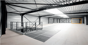 - Industrie et Logistique - Surface de vente- Différents types de planchers pour répondre aux exigences des usages intenses et contraintes techniques, - Structure autoporteuse, - Capacités de charges jusqu’à 1000 kg / m², - Montage simple et rapide, - Conformes aux normes Européennes FEM 10.2.02 et Eurocodes III, - Eventail d’équipements (SAS de sécurité, portillon à retour automatique, escalier à palier intermédiaire, plancher caillebotis pour préserver aussi la luminosité et rambarde H. 1100m).