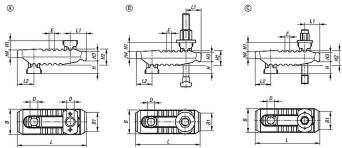 Les brides réglables peuvent être adaptées rapidement et sans paliers à la situation de serrage. Les brides possèdent différents nez à leurs extrémités et peuvent ainsi être retournées selon l'application. De ce fait, les brides peuvent être utilisées de multiples façons, non seulement dans l'usinage avec ou sans enlèvement de copeaux, mais aussi dans les secteurs des outillages de presses et du moulage par injection.