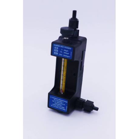 Le débit se lit grâce au tube gradué réalisé en verre borosilicaté avec gravure céramique, pour résister aux attaques chimiques de chlore.