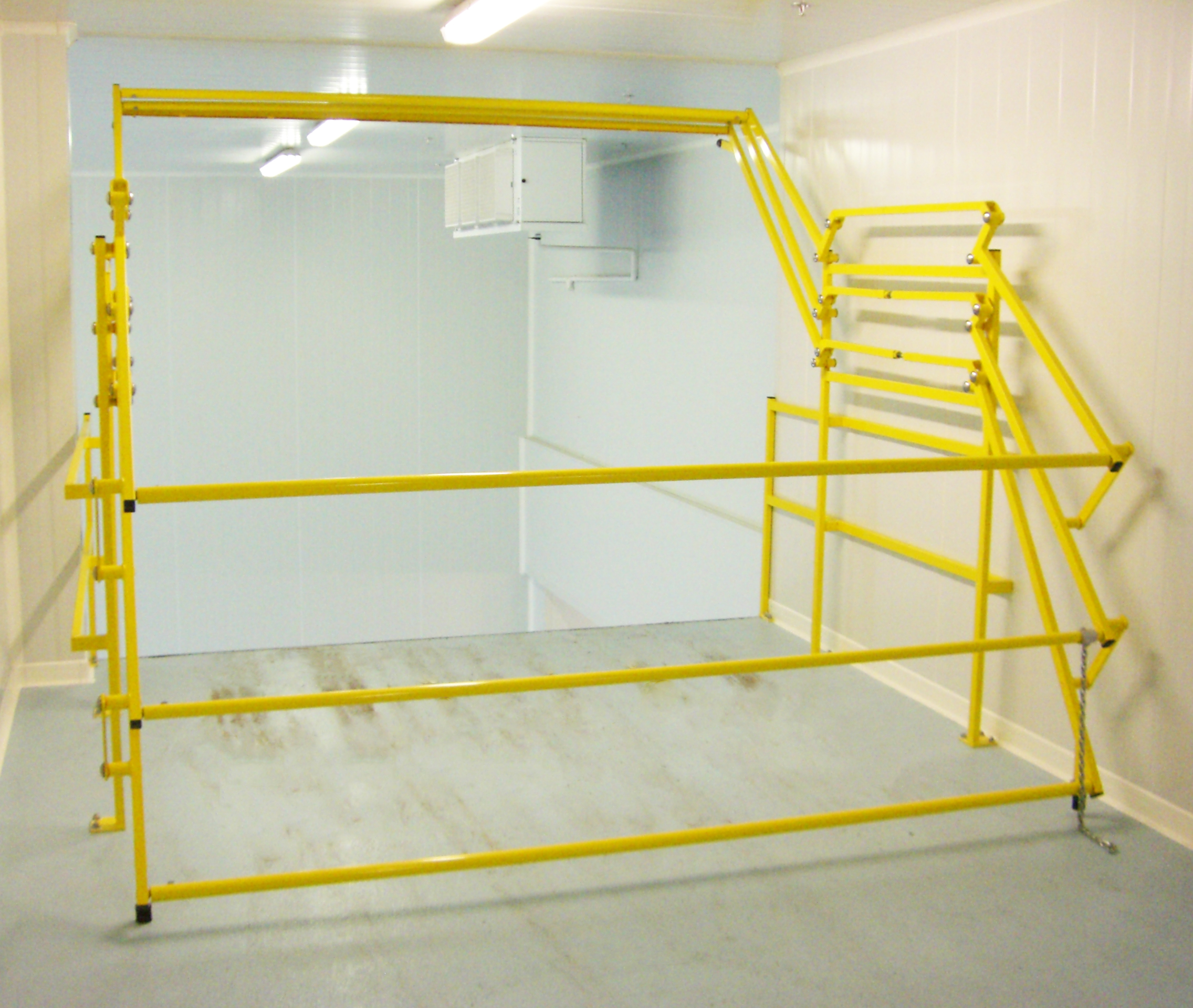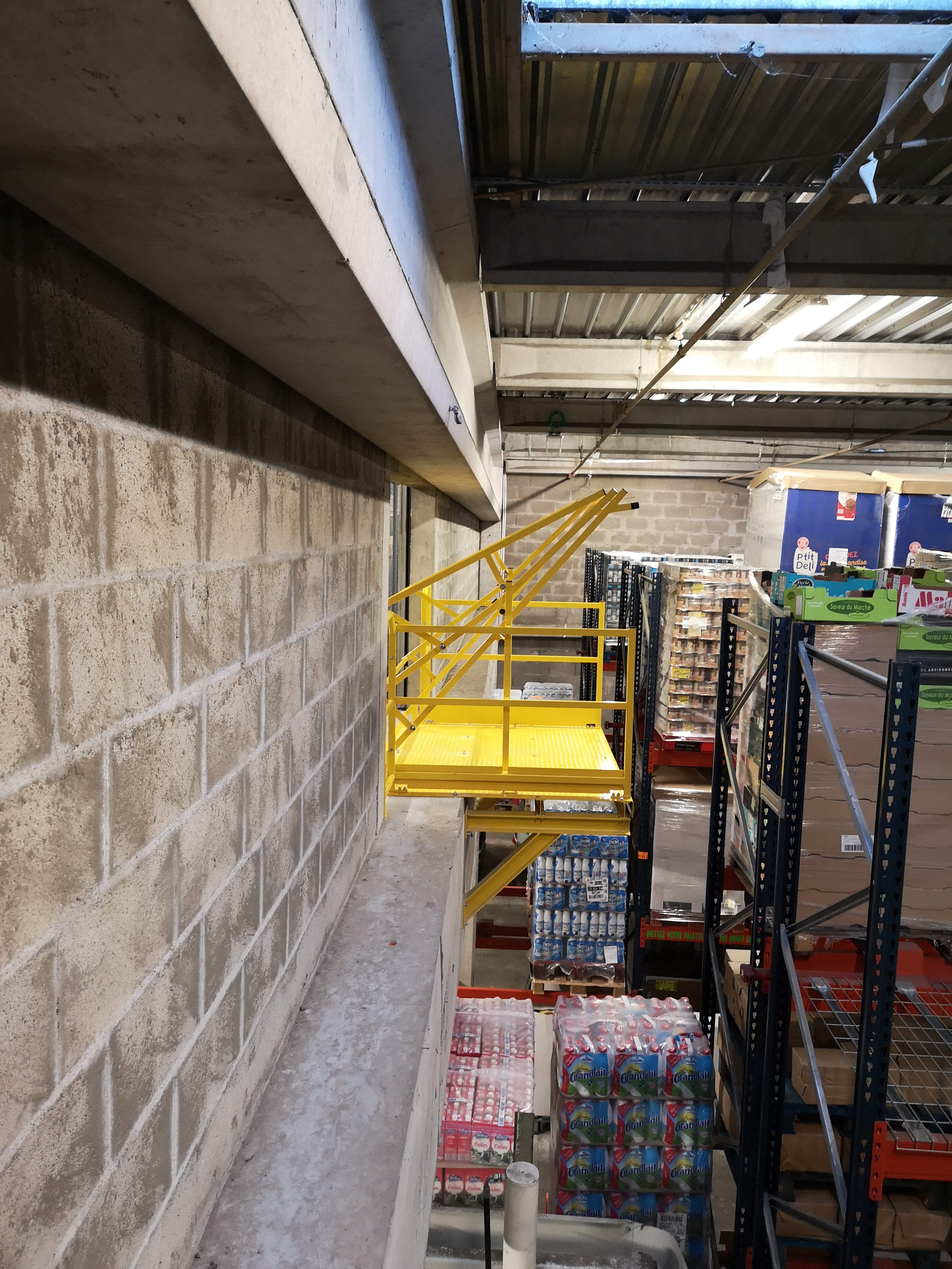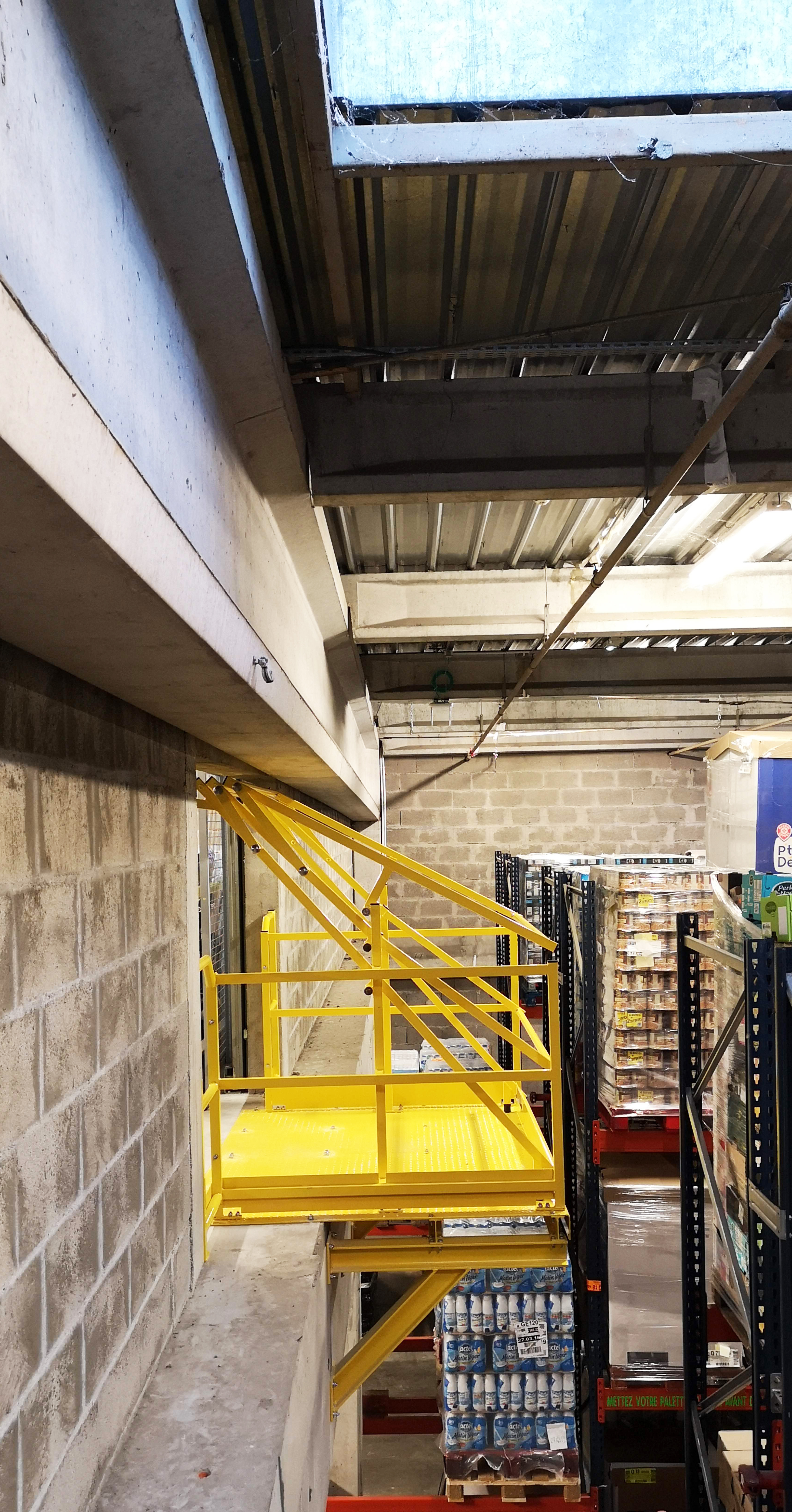 fois la charge déposée sur la mezzanine, l’opérateur sécurise la zone