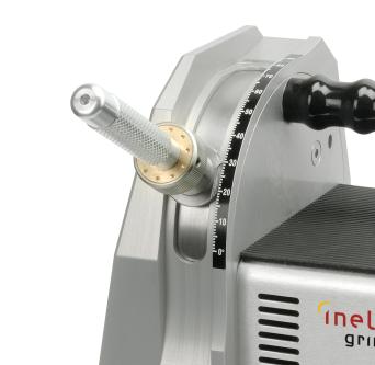 Le réglage précis de l’angle d’affûtage et le système de fixation unique assurent le centrage de l’électrode ainsi que l’affûtage dans le sens longitudinal de l’électrode. Un angle précis de la pointe de l’électrode est essentiel pour la qualité du soudage, le nombre de ré-allumages et la durée de vie de l’électrode.