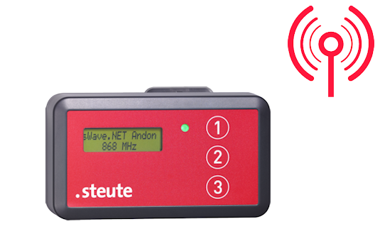 Le bouton-poussoir Andon mobile pour la demande en matériel simplifie le flux de matériaux dans l'intralogistique. Par une simple pression, des informations de commande peuvent être envoyées par transmission de données sans fil au centre de contrôle logistique interne.