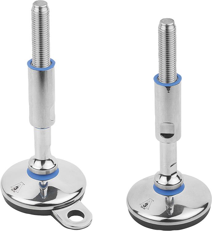 La haute qualité de la surface et la double étanchéité du filetage, ainsi que le joint spécial sur l'articulation de la broche du pied réglable de la machine, empêchent la saleté d'adhérer et réduisent le temps de nettoyage au minimum.