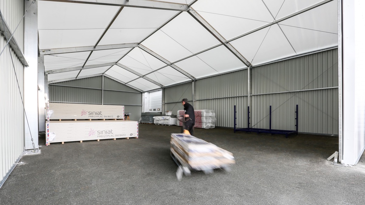 La tente industrielle de Spaciotempo vous offre la possibilité de subvenir à un besoin urgent de stockage supplémentaire. Elle se met à votre disposition pour quelques centaines de mètres carrés d’espace couvert (dimension au choix). Vous pouvez ainsi l’occuper à court ou à moyen terme.