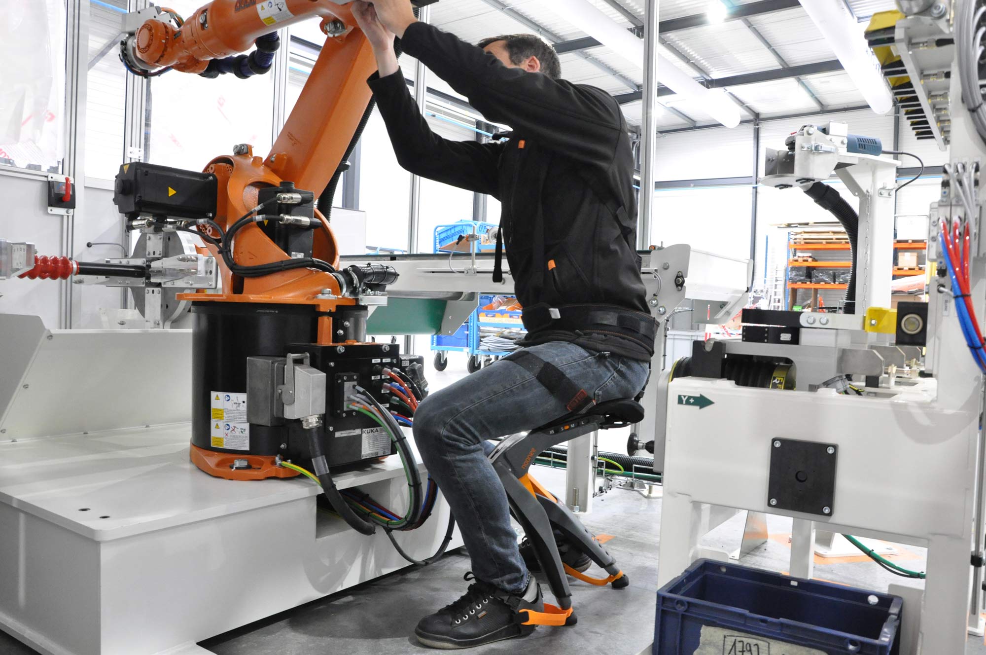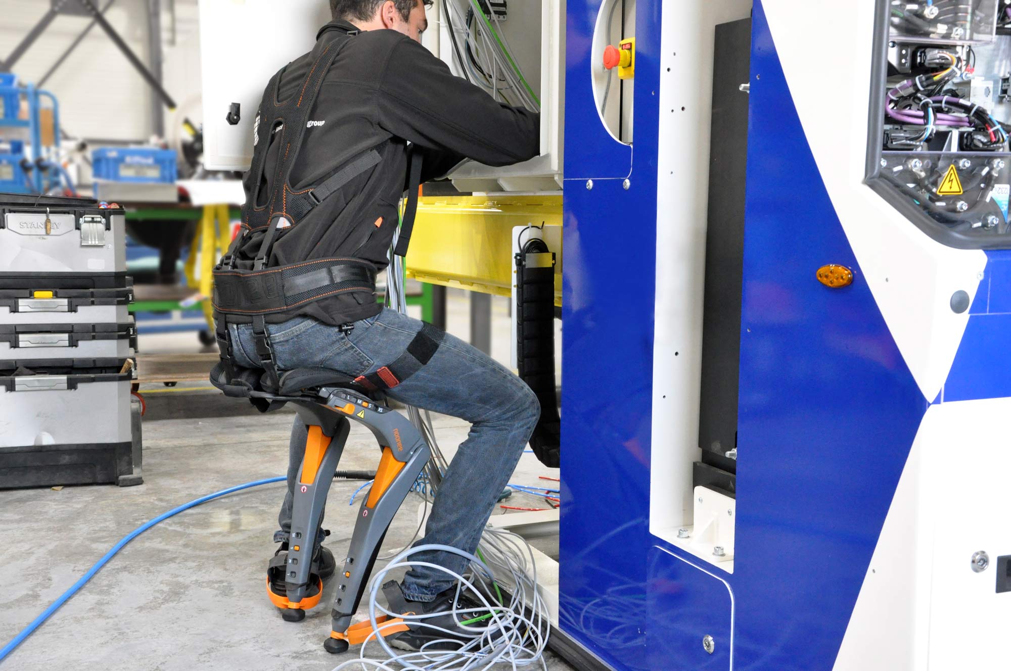 L’IP14 Chairless Chair® permet aux utilisateurs de se déplacer tout en bénéficiant d’un soutien permanent pour passer de la position debout à une position assise ou accroupi en se reposant sur le dispositif. L’exosquelette accompagne l’opérateur sans obstruer l’espace de travail, et aide à éviter les postures pénibles: telles que la flexion ou la position accroupie. Il permet ainsi de minimiser les risques de lumbago, le trouble musculosquelettique le plus fréquent.