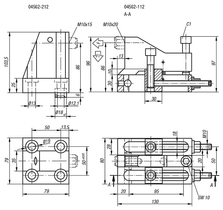 Cet ensemble de crampon et butée active permet de serrer et plaquer une pièce en une seule opération. L’effort de serrage transformé en plaquage par l’action de la butée active garantit un appui efficace de la pièce. Le crampon est équipé de 2 vis anti-recul DIN 913 qui empêchent celui-ci de reculer lors du serrage.