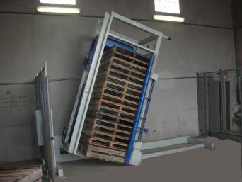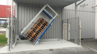 Après redressement de l’appareil, l’opérateur peut reprendre une pile de palettes triées et cadrées.