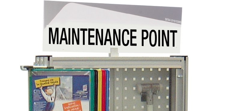 Bandeau design "POINT MAINTENANCE" l 600 x H 170 mm avec etrier de fixation (Anglais)