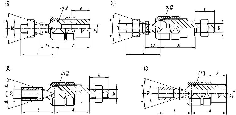 - Construction - Machines spéciales - Positionnement - Liaison rotule - Orientation-Angle d’inclinaison de 20° à 28° -Configuration mâle - femelle