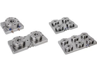 Plaque de base rectifiée sur les deux faces.Nota :Stations de bridage multiple prêtes à l'emploi avec modules de bridage UNILOCK ERGO 138 intégrés. Les stations de bridage sont fixées au moyen de brides de serrage ou directement vissées à la table de machine-outil.