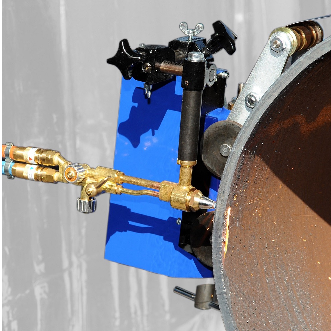 La torche de coupe peut pivoter de ± 45 ° et est réglable en hauteur et latéralement. Une commande électrique avec contrôle de vitesse peut être fournie en option.