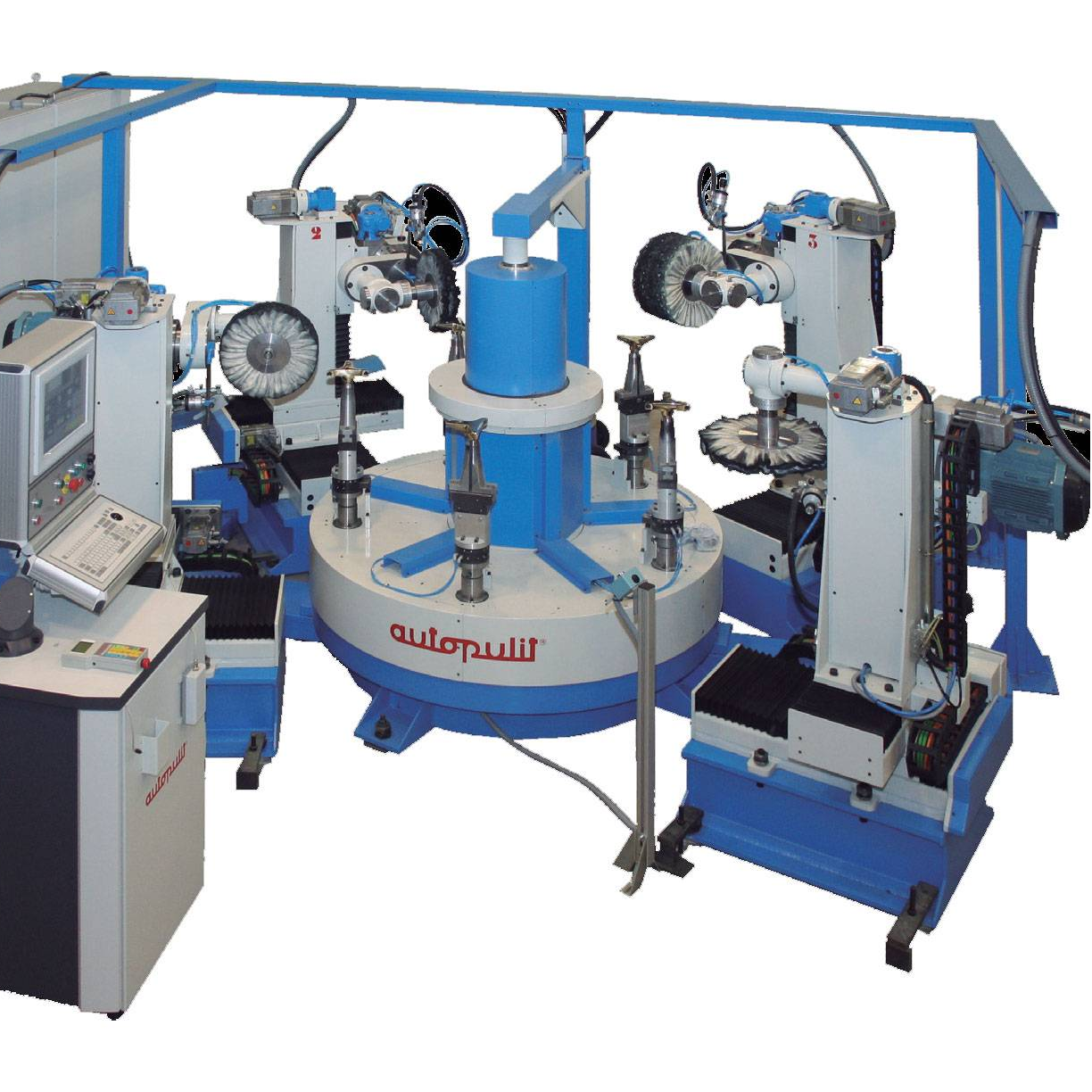Machines CNC, universelles ou transferts rotatifs, pour le polissage, ponçage, finition satinée et ébavurage de différentes pièces du secteur aéronautique, automobile, etc.
