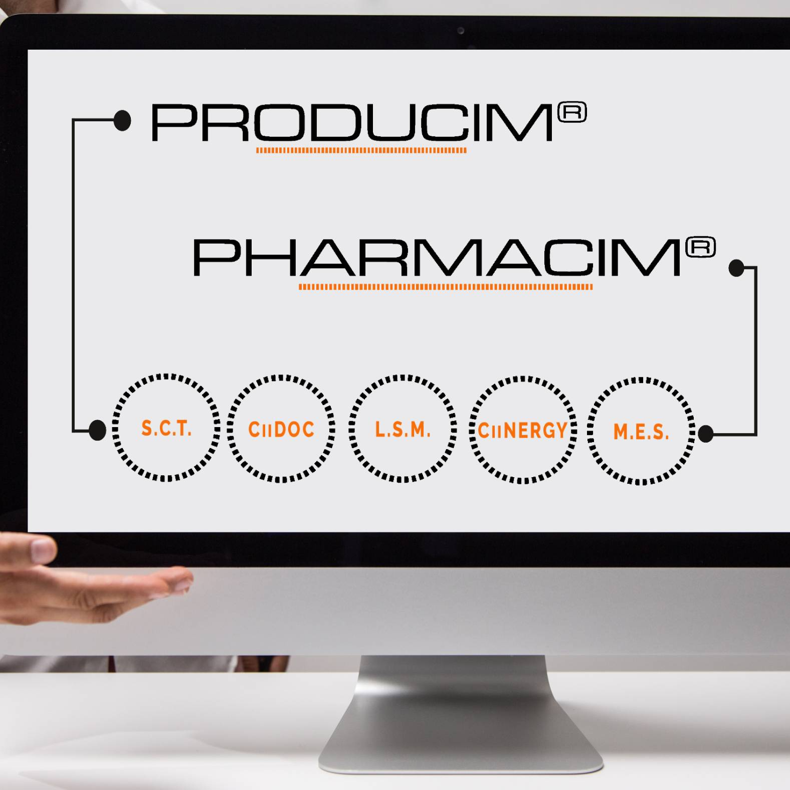 Pharmacim se décline en Suite Pharmacim LSM, Suite Pharmacim MES, Suite Pharmacim CiiDOC, Suite Pharmacim S.C.T, Suite Pharmacim Ciinergy.