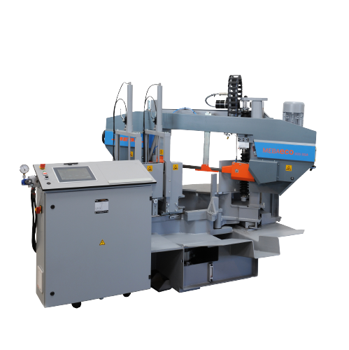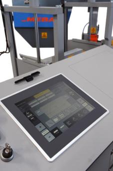 Ce modèle est équipé, entre autres, de l’avance verticale de la scie par vis sans fin, de l’avance et pression de coupe contrôlé et modifié automatiquement. Et il permet des coupes droites et biaises de 35 à 135°.