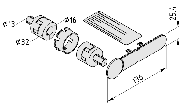 Bague de positionnement convoyeur 8 40, PA6, ESD Embout BFT 8 40, PA6, ESD 2 accouplements à moyeu expansible D16/d13, Al/Ku Languette de sécurité pour composants rotatifs Le kit de synchronisation BFT 8 40 sert à synchroniser deux convoyeurs ou plus. Il est également possible de l’installer a posteriori. Note : Le kit de synchronisation est fourni avec les convoyeurs à courroie double et les convoyeurs à courroie crantée double. Le kit de synchronisation relie les deux poulies d’entraînement et transmet le couple à l’unité suivante. Les accouplements à moyeu expansible sont simplement installés dans les arbres creux des poulies. Le tube D16x1,5 St (0.0.664.14) sert d’arbre de synchronisation. Le profilé cache arbre de synchronisation 8 40 (0.0.710.31) couvre l’arbre tournant.