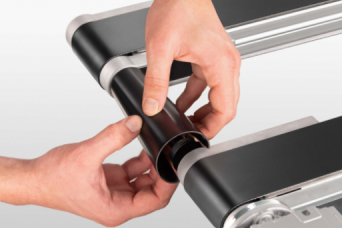 Afin de protéger les collaborateurs, l’arbre de synchronisation est habillé du profilé cache arbre de synchronisation 8 40 K. Le profilé cache peut aussi être ajouté a posteriori. La bague de positionnement dans le kit de synchronisation BFT 8 40 (0.0.703.07) assure la pose correcte. Dans le but d’empêcher l’ouverture incorrecte de la protection pour arbre de synchronisation, il est recommandé de fixer la languette de sécurité aux composants en mouvement (0.0.710.81). Elle se déchire lorsque le cache est retiré. Note : Le profilé cache arbre de synchronisation est fourni avec les convoyeurs à courroie double et les convoyeurs à courroie crantée double.