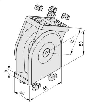 Blocage en rotation possible par suppression de deux entretoises. Se positionne sur le profilé à l’aide de deux pions amovibles.