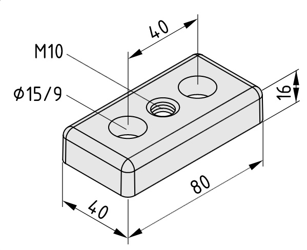 Plaque de base 8 80x40, M10, noir