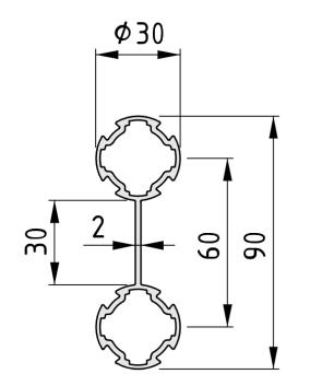 Plus de finesse ! Le kit palier pivotant D30-28,5 M8 facilite les applications karakuri et d’automatisation « low cost » avec des produits légers à transporter. Grâce à des paliers fixes et des paliers libres, un profilé peut facilement tourner autour de son axe longitudinal. Plus de maintien ! La barrette continue en aluminium du tube profilé double D30-60 relie deux tubes profilés D30 intégrés. La connexion continue renforce nettement la rigidité à la flexion en cas d’utilisation verticale par rapport à deux tubes profilés D30 séparés.