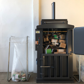La presse à balles V75E fait partie de nos compacteurs à déchets compactes qui répondent à un faible besoin de compactage de déchets cartons, films plastiques.